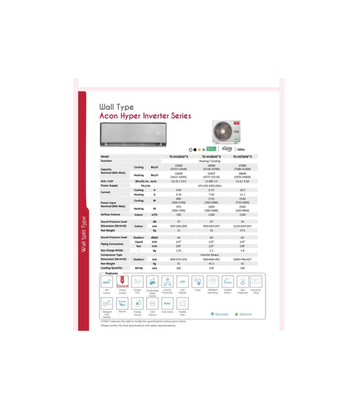 تحكم واي فاي وضعيات تبريد امكانية اعادة تشغيل تلقائي ذكي تحكم