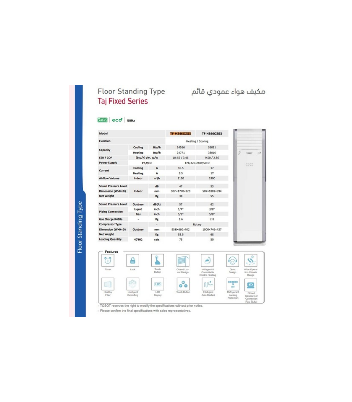 تحكم في الطاقة وضعيات تبريد امكانية تحكم تشغيل والاطفاء تنظيف تلقائي تيربو انفيرتر اقتصادي تحكم بالهواء
